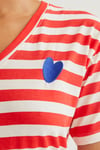 Camiseta rayas rojo y blanco con bordado de corazón azul