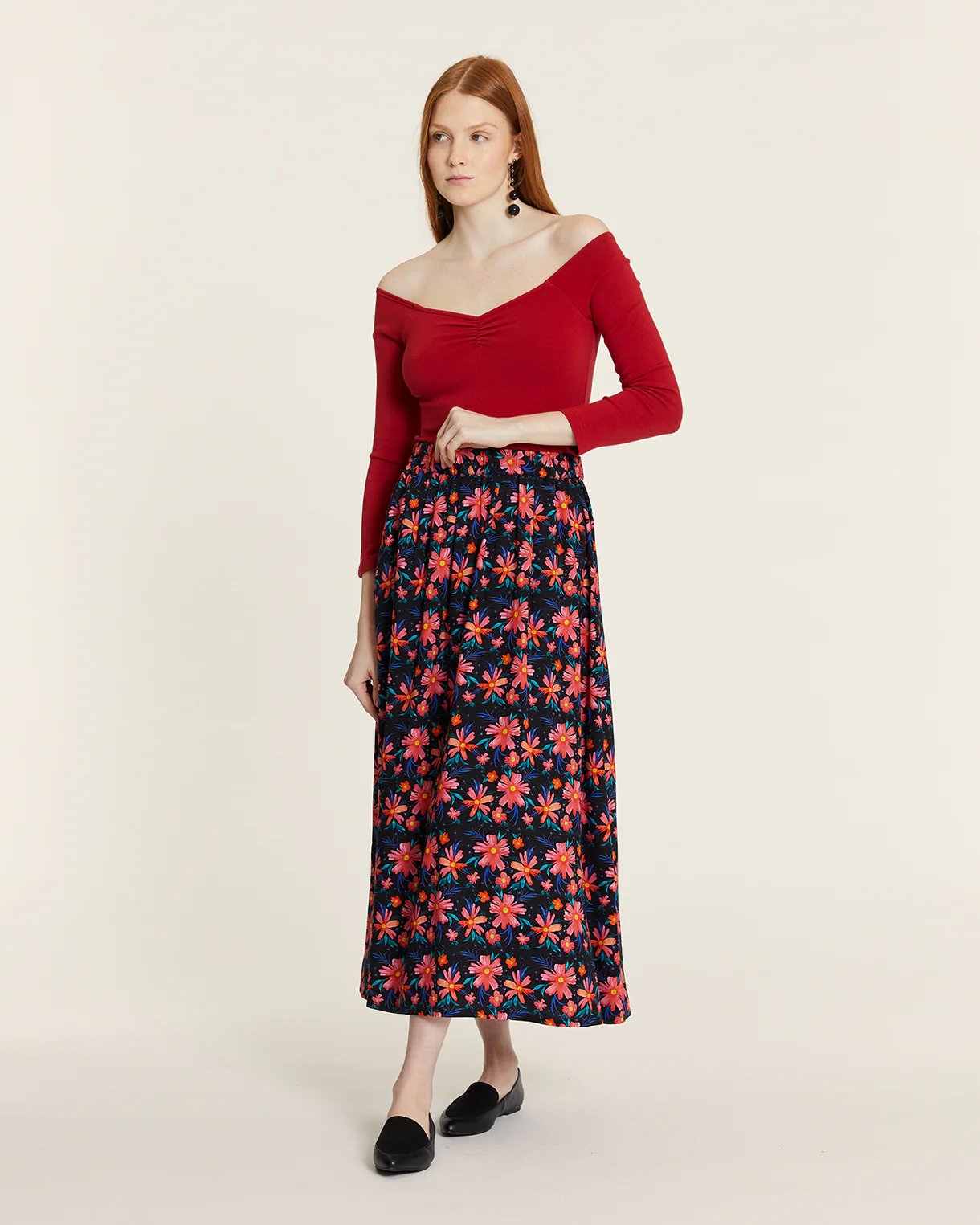 Body con fruncido de color rojo, mangas largas rectas y escote heart shaped.