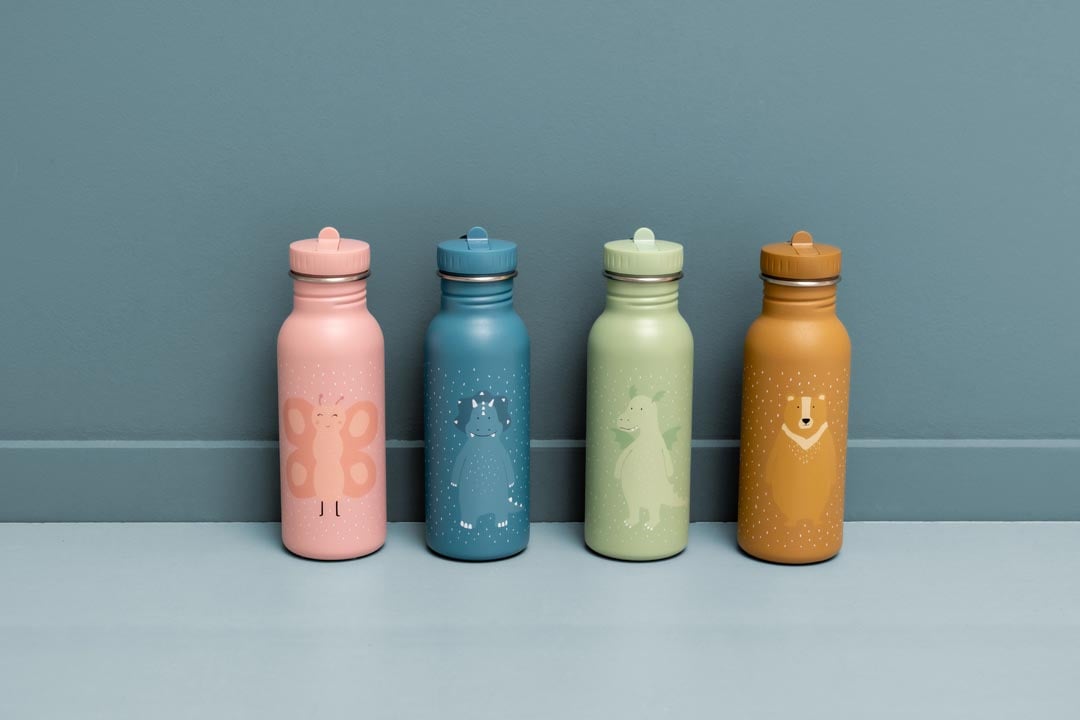 Las botellas de acero son la alternativa perfecta y duradera a las botellas de plástico de un solo uso. La botella es ligera, resistente y no libera sustancias tóxicas al agua. Las botellas son completamente a prueba de fugas. El práctico tapón con boquilla está diseñado pensando en los niños pequeños y se puede abrir y cerrar fácilmente. Cada botella viene con una cinta para llevar la botella o colgarla en una mochila.