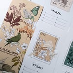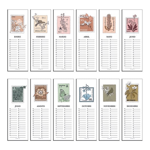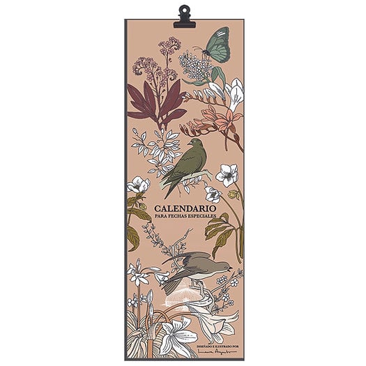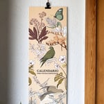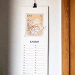 Calendario ilustrado de pared compuesto por 12 láminas mensuales, cada una cuidadosamente diseñada para alegrar tu espacio a lo largo del año. Mide 42 x 14,85 cm y está impreso en papel Shiro de 200 gr. Incluye una pinza negra con un orificio para colgarlo fácilmente donde prefieras.