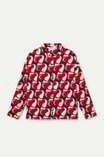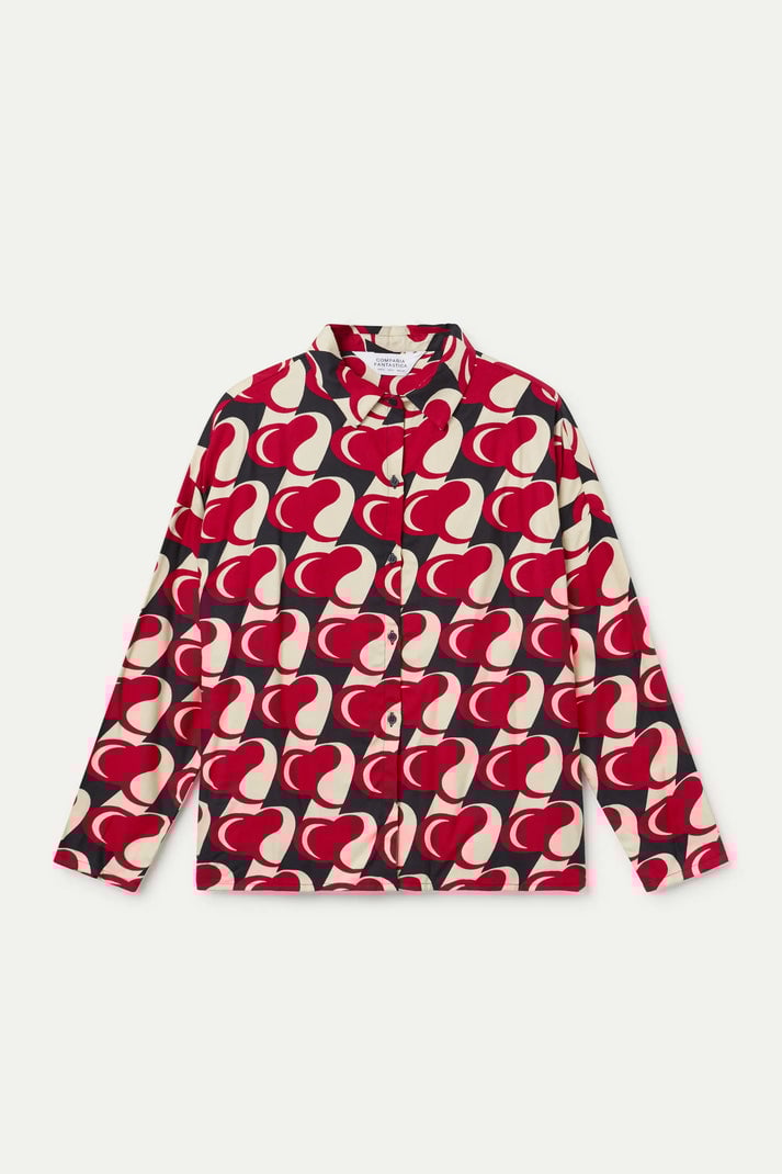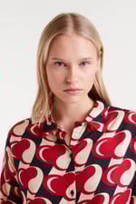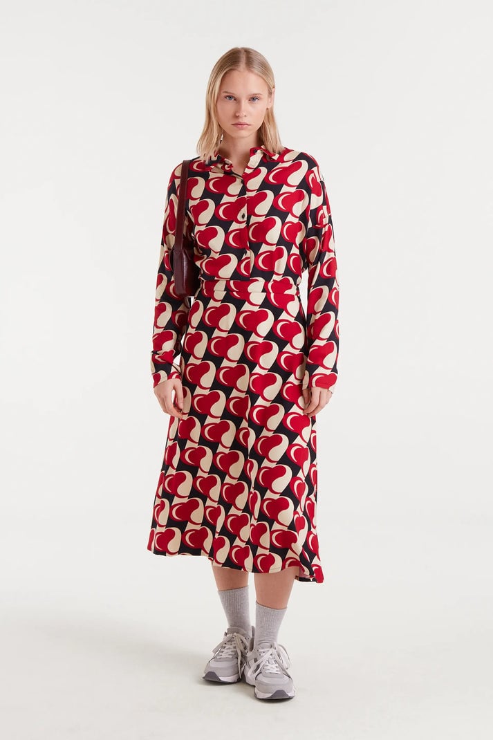 Falda midi de tejido viscosa twill con estampado Heart Attack. Cintura fija de tiro alto con cremallera invisible lateral. La modelo mide 178 cm y lleva la talla S.
