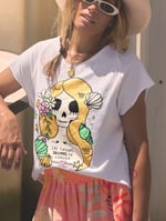 Camiseta oversize de algodón de primera calidad con ilustración Sirena en el frente, el dorado es glitter, porque el brilli brilli siempre es bien :)