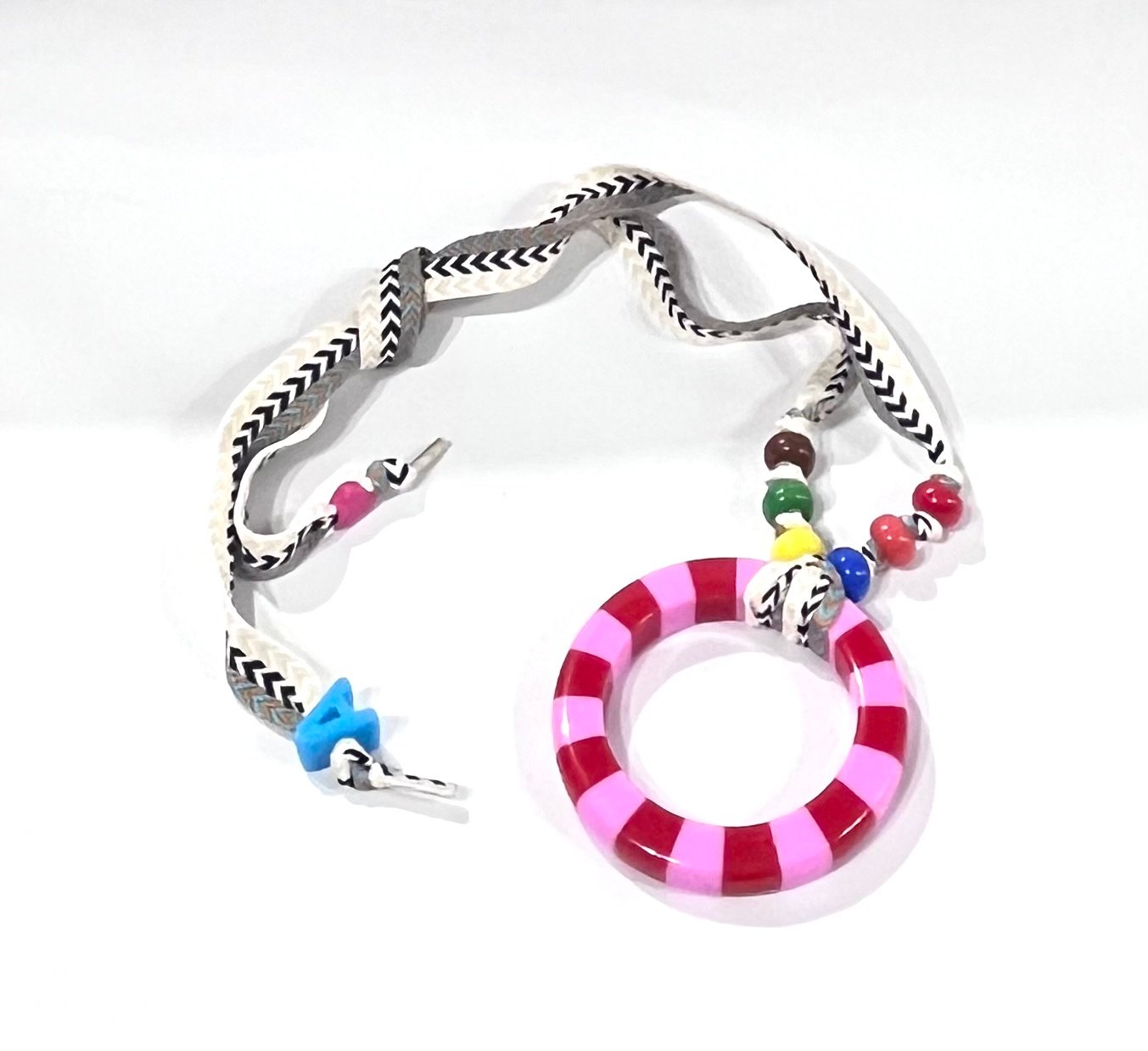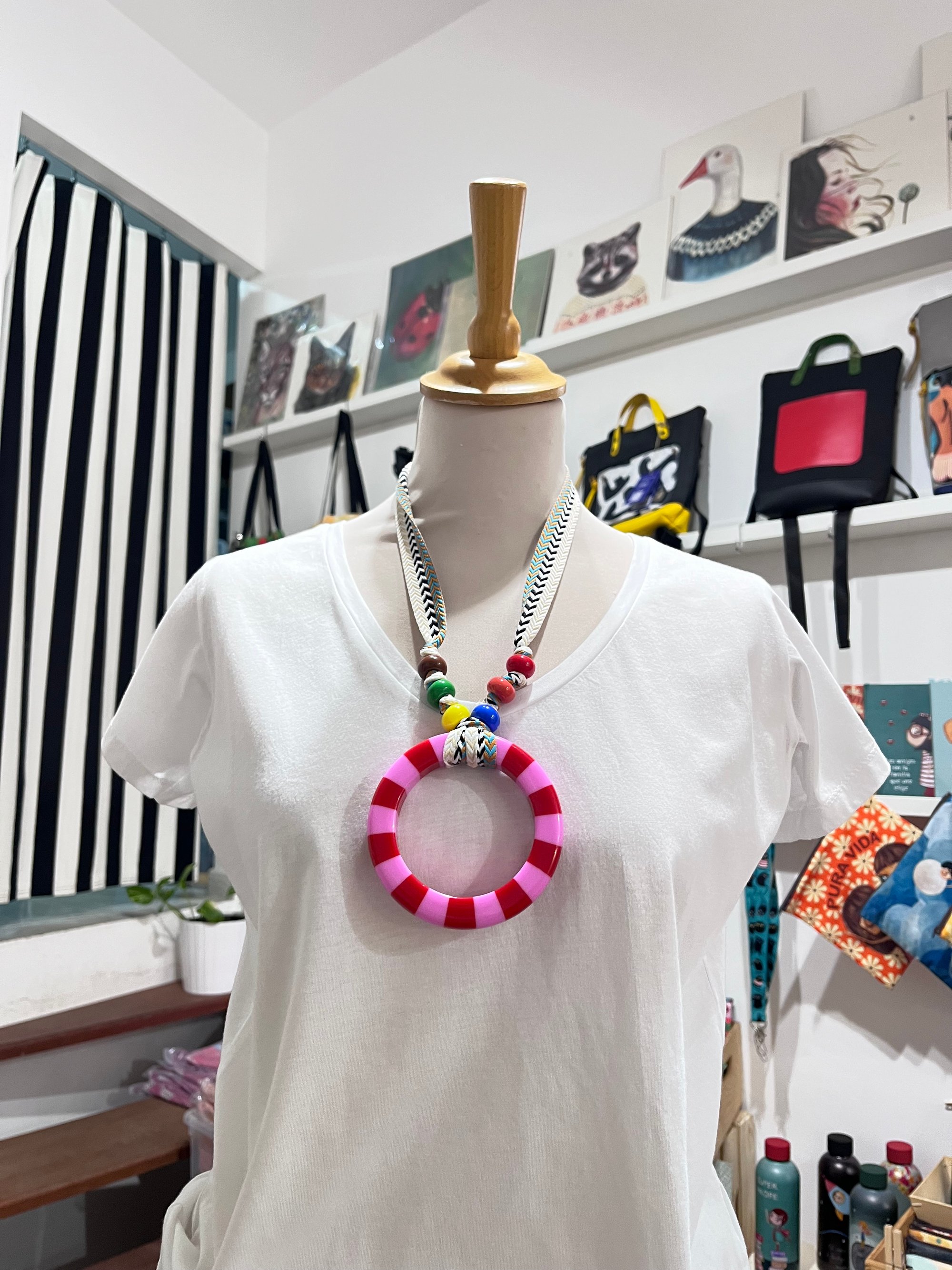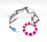 Este collar con elementos multicolores es tan bonito que será el el centro de las miradas. Puedes regularlo en altura, dejando los charms del extremo más largos o cortos.