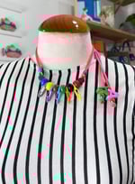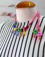 Este collar con elementos multicolores es tan bonito que será el el centro de las miradas. Puedes regularlo en altura, dejando los charms del extremo más largos o cortos.