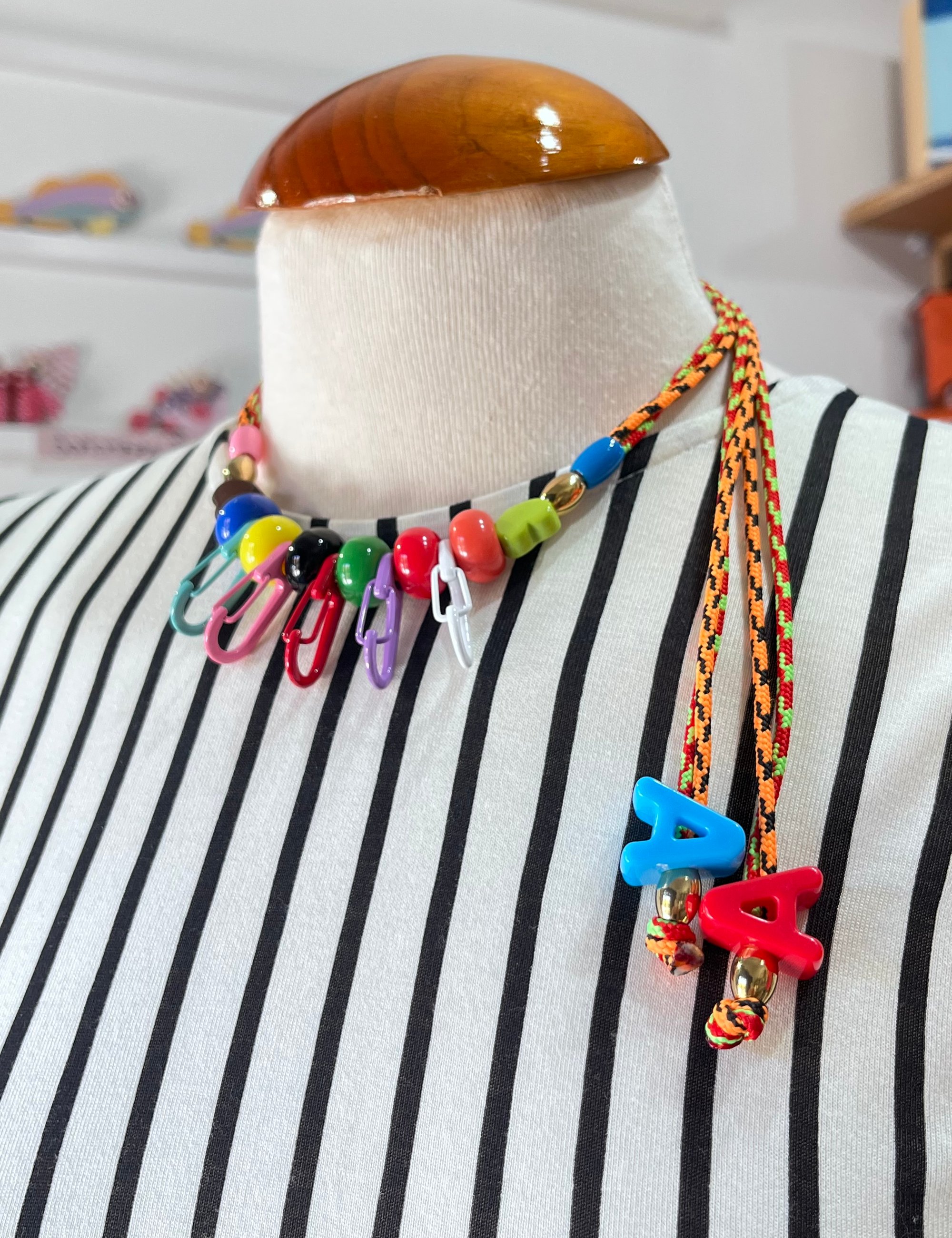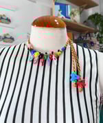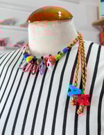 Este collar con elementos multicolores es tan bonito que será el el centro de las miradas. Puedes regularlo en altura, dejando los charms del extremo más largos o cortos.