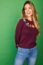 Jersey cuello caja y mangas abullonada con bordado en los puños y cuello. Es precioso!