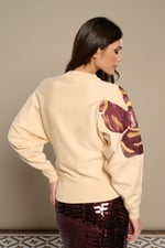 Jersey de punto con cuello redondo y manga larga. Cuello, cintura y mangas en rib. Bordado en hombros.
