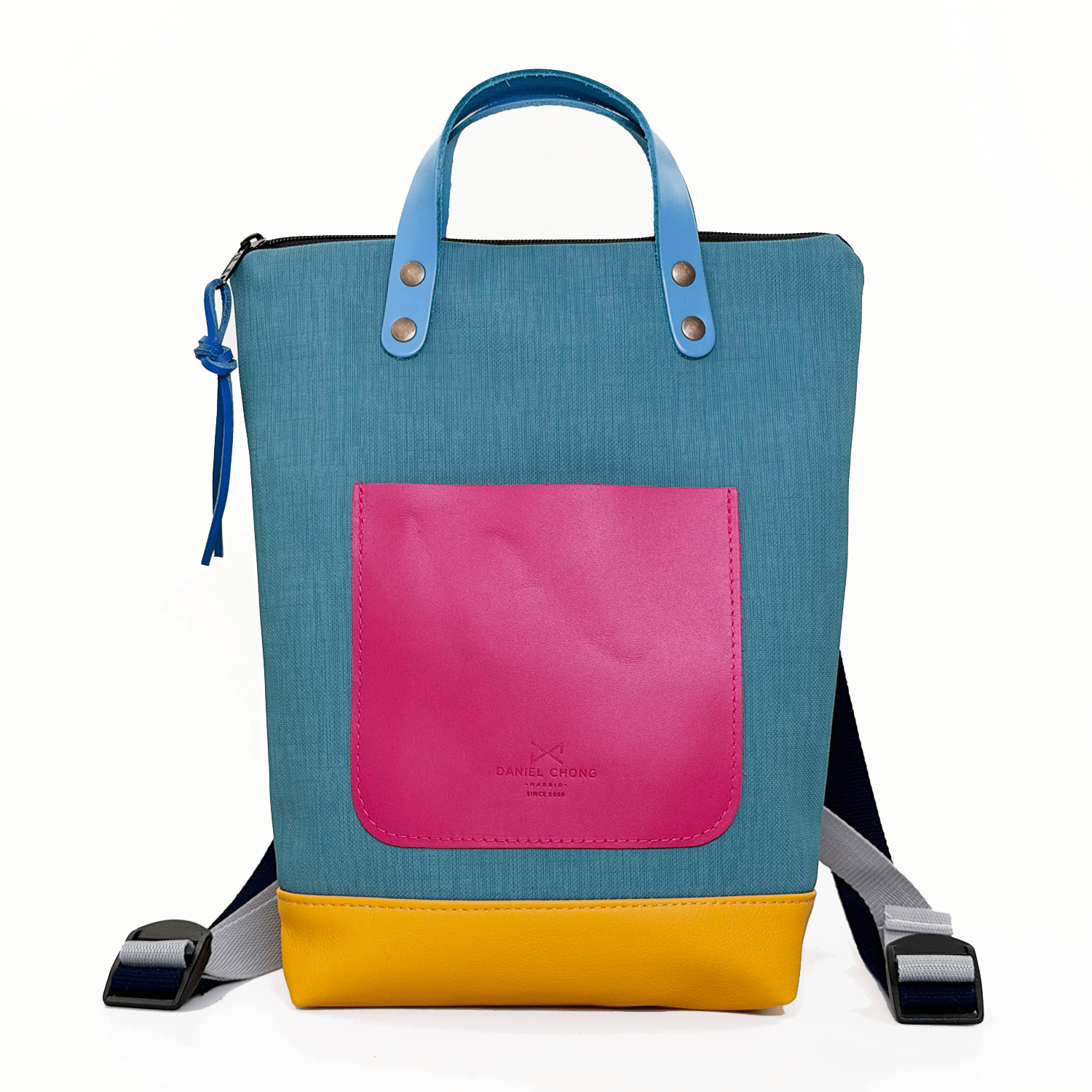 Mochila mini tonos turquesa y fucsia