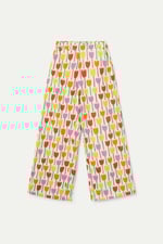 Pantalones de tejido 100% algodón con estampado tulipa. Cintura elástica de tiro medio. Pernera recta. Bolsillos laterales. La modelo mide 177 cm y lleva la talla S.