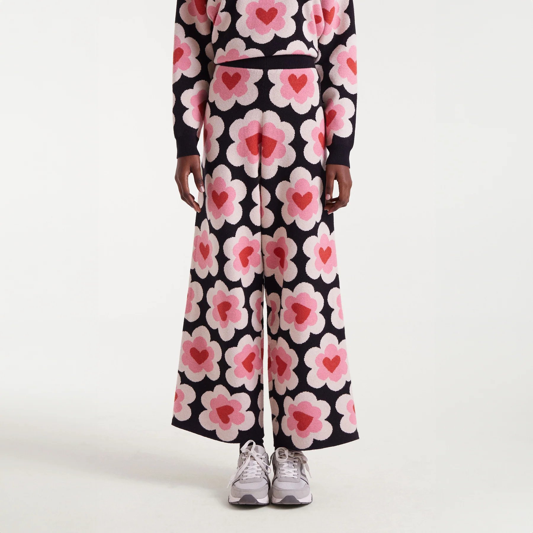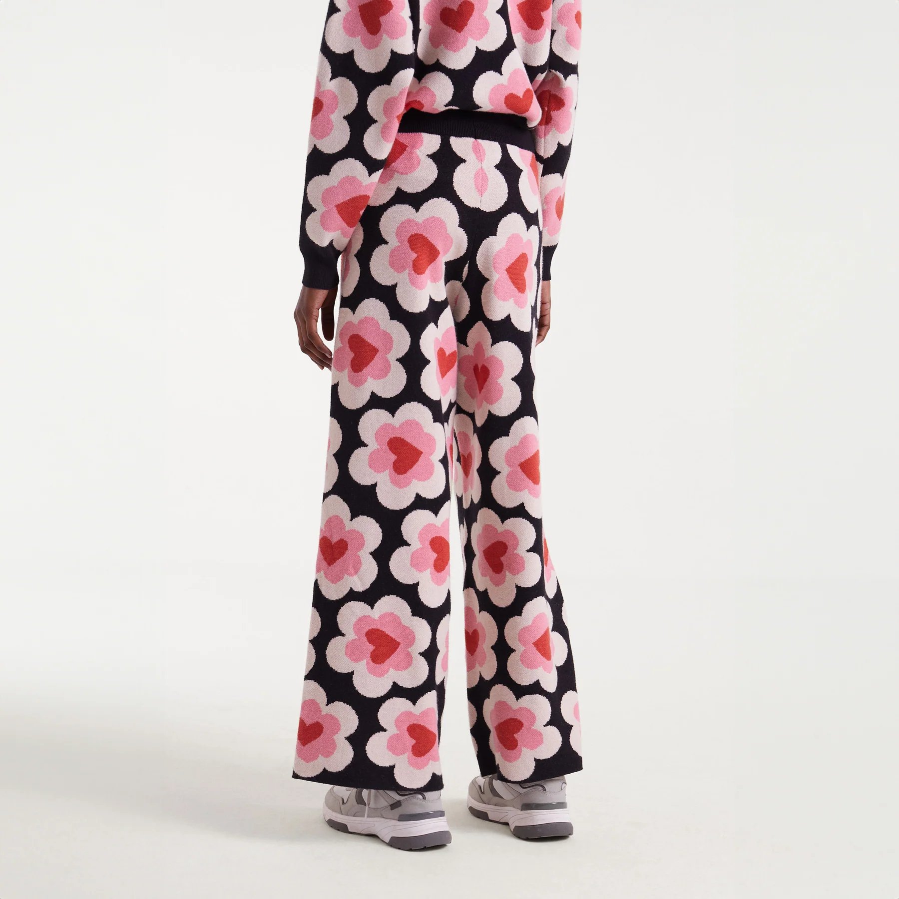 Pantalón de punto jacquard con estampado SweetHeart. Con cintura elástica de tiro medio y pernera recta. La modelo mide 178 cm y lleva la talla S.