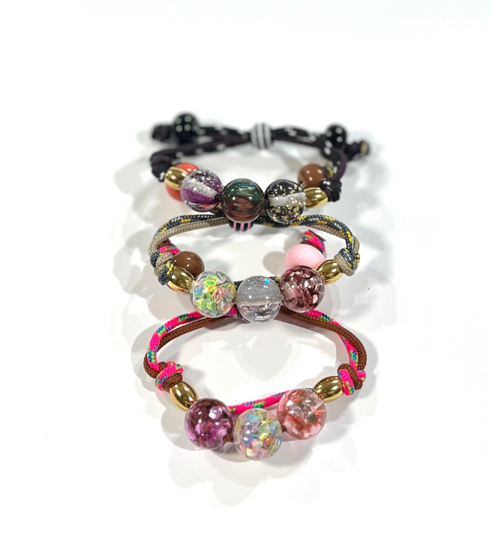 Se pueden mojar, en ducha y playa, los metales que ves son acero. El resto resinas acrílicas y cabos náuticos...