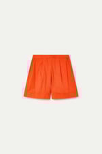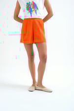 Shorts de tejido 100% algodón de color naranja. Cintura fija elástica de tiro alto. Pernera recta.Forro interior. La modelo mide 175 cm y lleva la talla S.