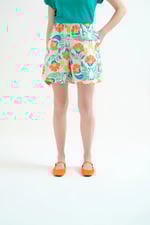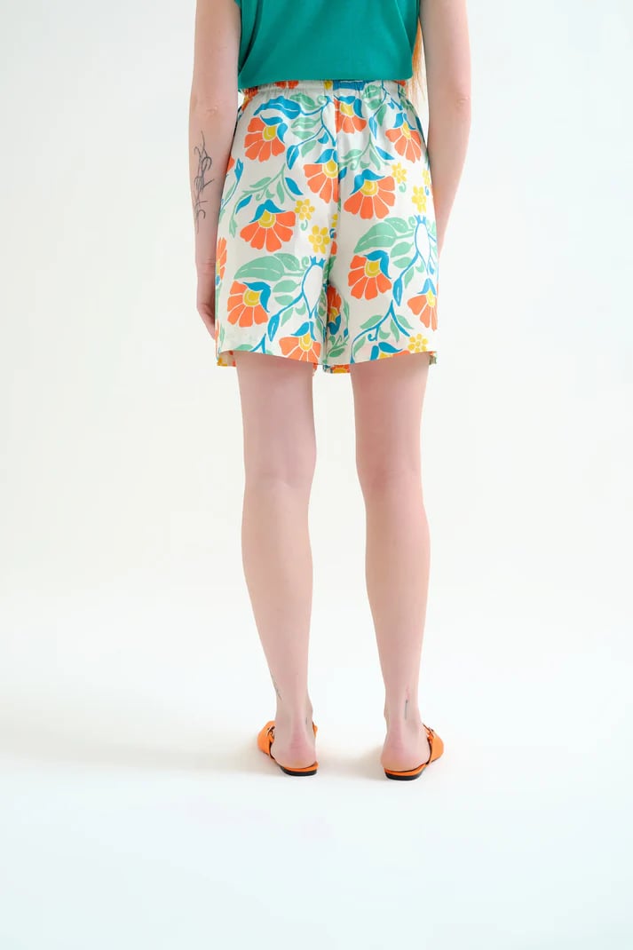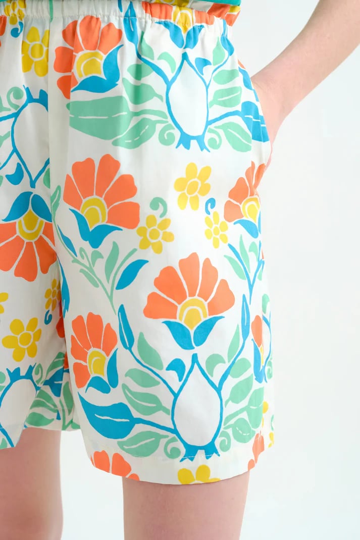 Shorts de tejido 100% algodón con estampado big royal. Cintura elástica de tiro medio. Bolsillos laterales. La modelo mide 175 cm y lleva la talla S