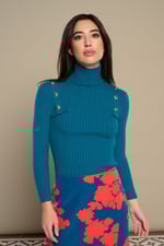 Jersey de punto con cuello redondo y manga larga. Cuello, cintura y mangas en rib.