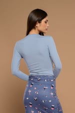 Camiseta ajustada drapeada de manga larga y cuello en V. Tejido elástico.