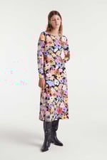 Vestido midi con estampado Hampton Big. Con escote barco y manga larga. Detalle de abertura lateral. La modelo mide 177 cm y lleva la talla S.